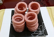 먼저 크기가 넓은 용기를 준비하여.. 햄을 깍둑썰기해서 담아주고...