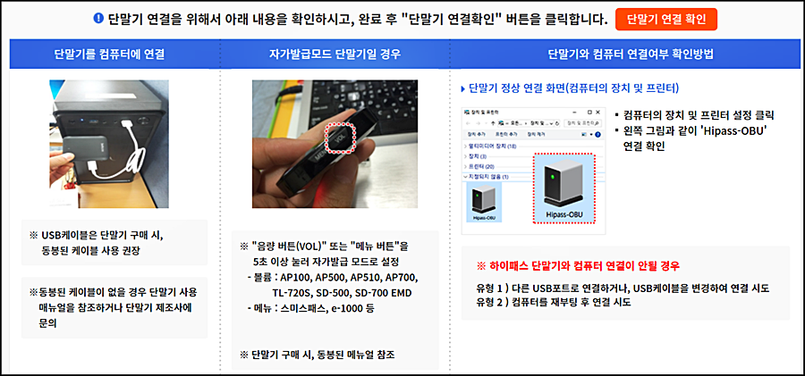 필요한 프로그램 설치 후 등록할 하이패스를 컴퓨터에 연결하고 안내에 따라 설치하시면 된답니다.