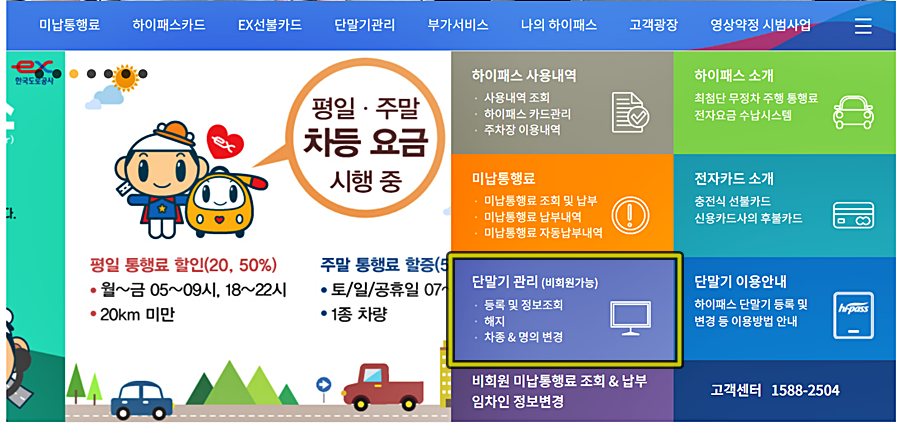하이패스 통합 메인 페이지에서 오른쪽 메뉴에서 단말기 관리로 들어가면
