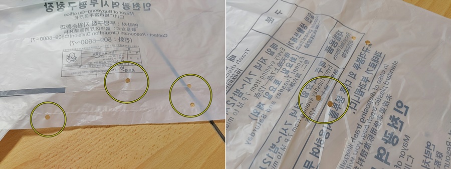 이렇게 숨구멍이 생긴 종량제 봉투 확인을 해봐야겠죠^^