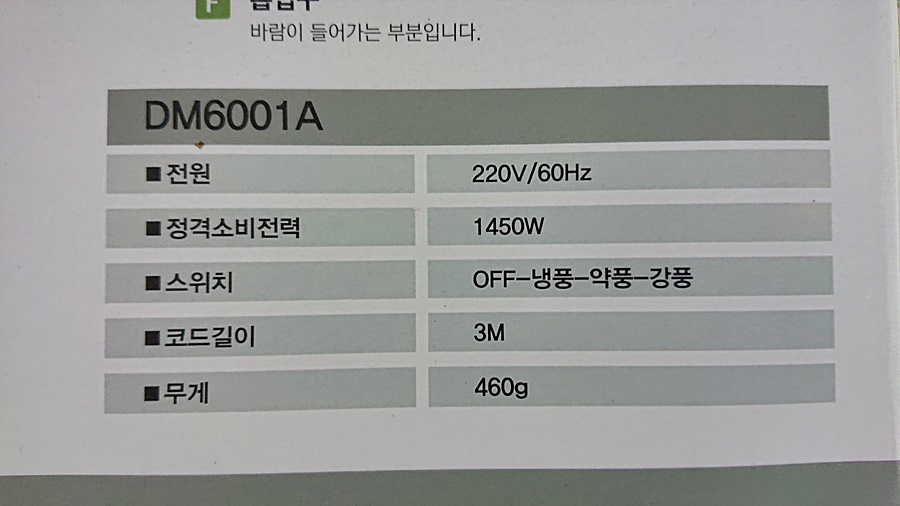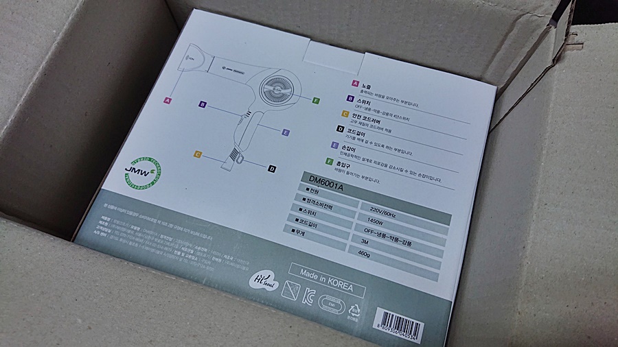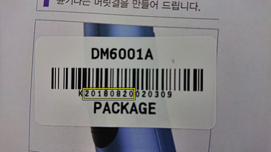 이 모델(DM6001 A)의 경우 2014년에 출시되어 지금까지 꾸준히 판매되고 있는 드라이기로 제가 구입할 당시 제조일자도 그 기간이 오래된 제품이 아니고 최근에 생산된 제품을 받을 수 있었네요