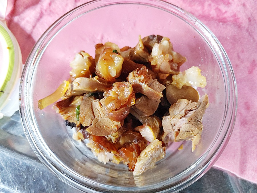 살짝 찐 족발을 살코기 부분만 따로 발라서 적당한 용기에 담아 주고요.