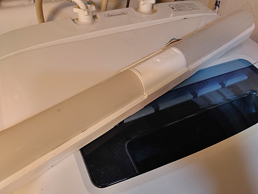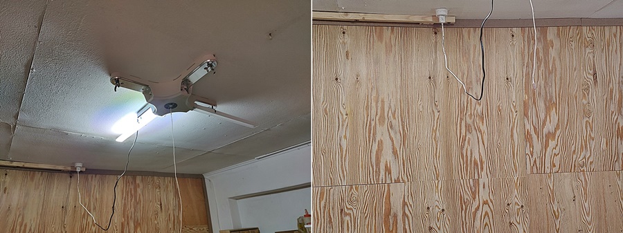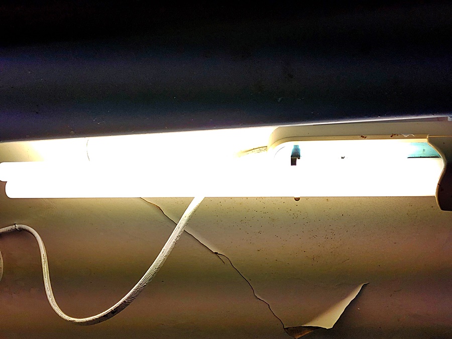 일단 잘 들어오는지 테스트할 겸 등기구를 달고 전구색 형광등을 껴봅니다.