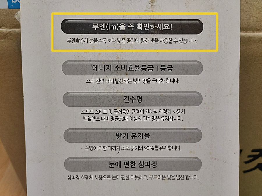 그것이 바로 루멘(lm)-[루멘 네이버 검색 참고]인데 이 구입하려는 형광등 포장지에 표시된 루멘을 확인하고 구입하는 것도 좋을 거라 생각하여 이렇게 내용을 간단하게 추가해 봤어요