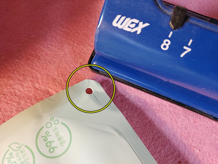 클립이 없다면 클립을 끼울 자리에 구멍을 내주어도 되는데 저는 펀치가 있기에 간단하게 펀치로 구멍을 내어주고...