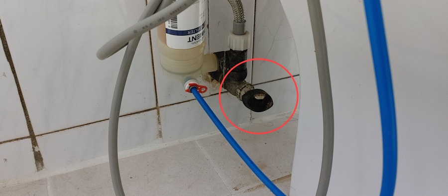 그리고 변기 아래 뒤쪽에 있는 변기에 물을 급수하는 밸브를 잠그고 물을 한 번 내려서 변기 물통을 비워주세요