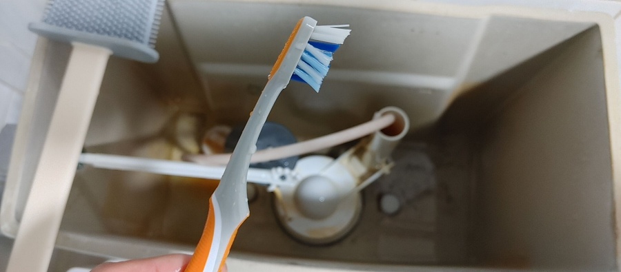 솔질을 다 하고 물을 내린 후 변기 부품들은 칫솔을 이용하여 쓱쓱....^^