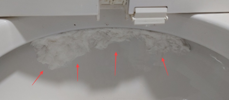 물만 채웠을 뿐인데 변기 물을 내릴 때와는 다르게 이물질들이 떠오르기 시작하네요