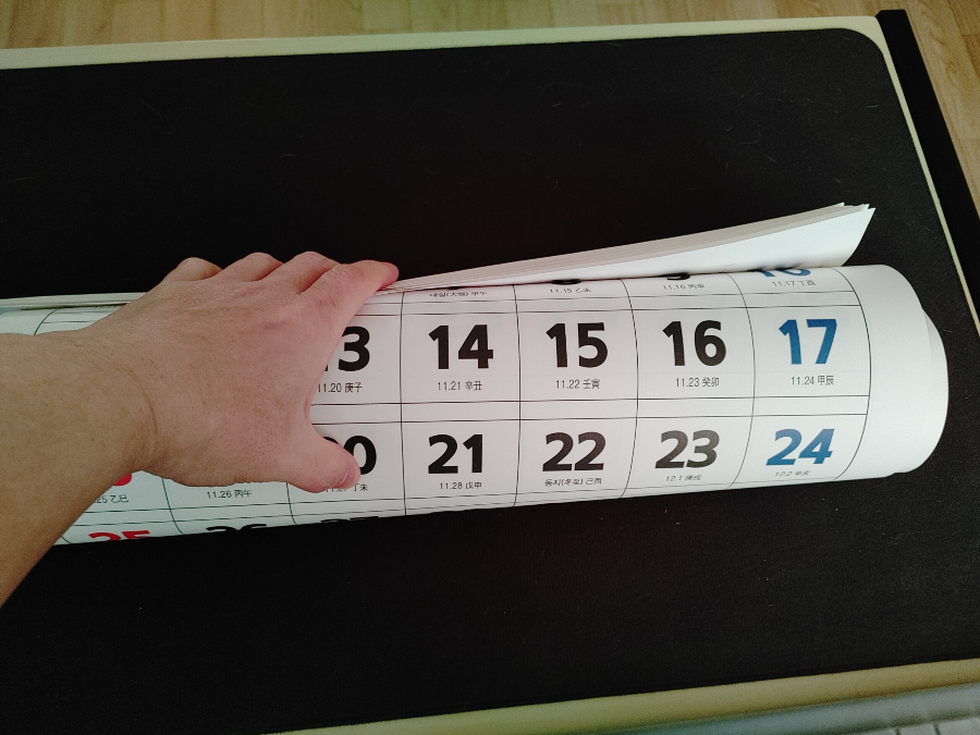 위와 같이 말린 달력을 반대로 다시 돌돌 말아서 최대한 펼쳐지게 해 주시는 분들이 많으실 거예요^^