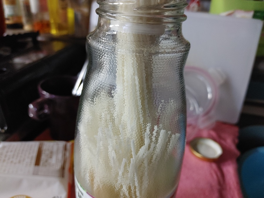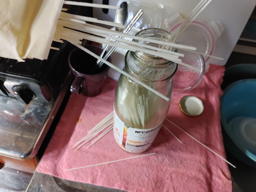 이렇게 입구가 넓은 주스병에 국수를 담아 보관해보니 국수를 일정 기간 두고 먹는데 걱정을 하지 않아도 되고 위생적이면서 국수를 꺼낼 때도 나름 편하고 괜찮아서 지금도 잘 이용하고 있답니다.