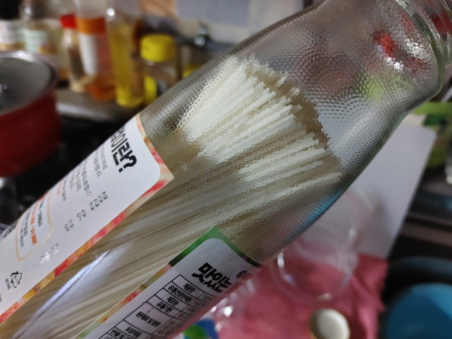 이렇게 입구가 넓은 주스병에 국수를 담아 보관해보니 국수를 일정 기간 두고 먹는데 걱정을 하지 않아도 되고 위생적이면서 국수를 꺼낼 때도 나름 편하고 괜찮아서 지금도 잘 이용하고 있답니다.