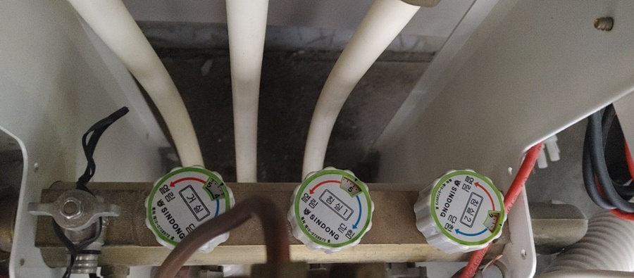 난방수를 빼줄 때 중요한 것이 있는데요. 꼭 각 방 난방이 동작되도록 해주어 난방수가 순환되면서 동시에 에어가 빠지도록 해줘야 됩니다.