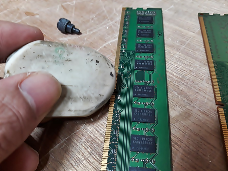 그래서 오염된 메모리카드 핀 부분을 준비한 지우개로 쓱쓱~~