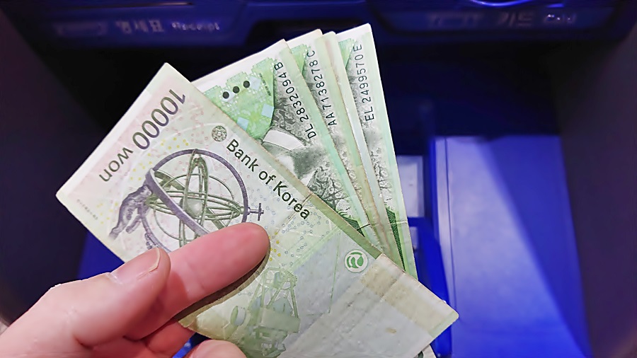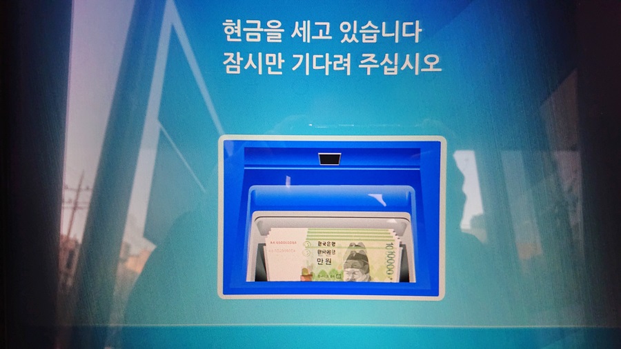 아주 반갑게 드르르륵하면서 atm기가 현금을 세고 있습니다라는 안내문구와 함께 돈을 셉니다.
