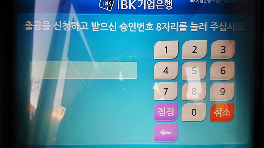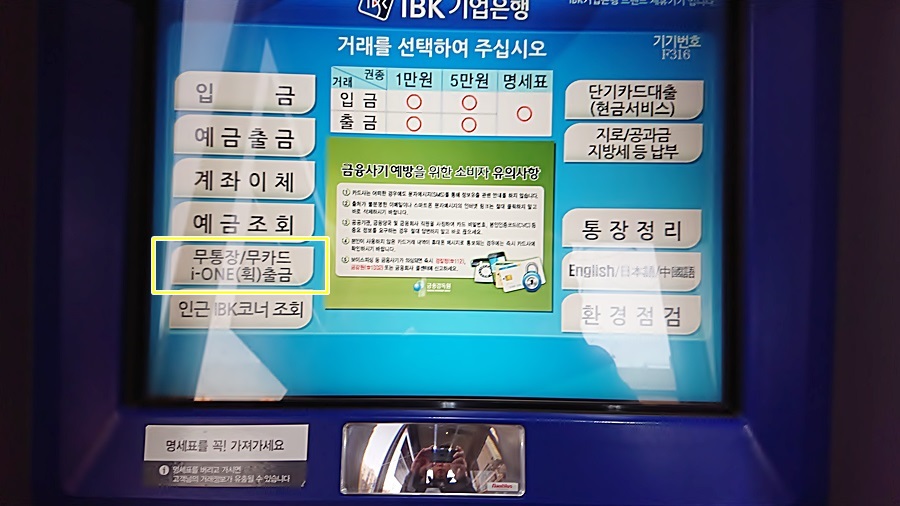 이 기업은행 atm기에서 카드 없이 계좌에 있는 현금을 츨금하는거죠