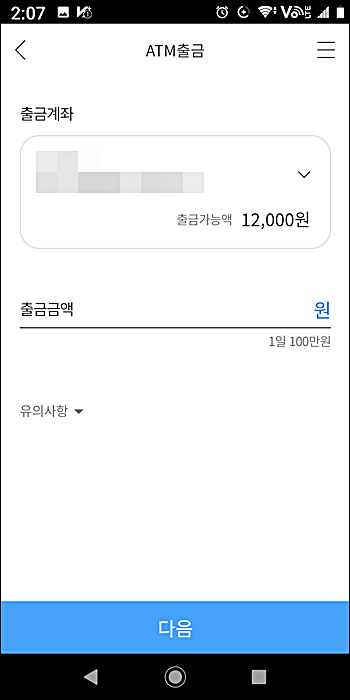 atm출금 다음 화면에서 출금할 금액 입력을 해주고 다음