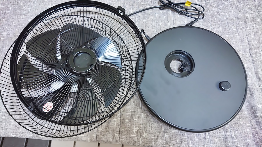선풍기 팬과 망 그리고 컨트롤 기능이 있는 바닥판