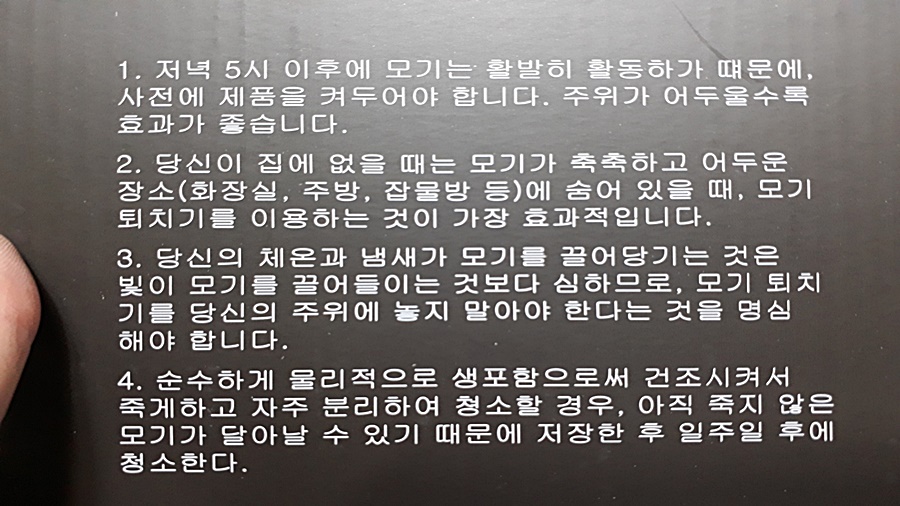 박스에 소소하게 모기 포집기(모기 잡이)로 모기를 어떻게 잡아야 하는지에 대한 정보도 친절하게 기록해주었네요..^^