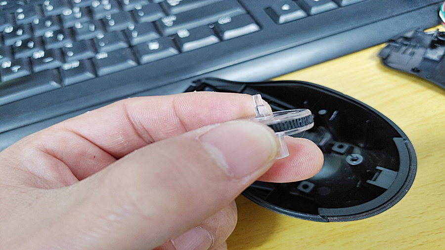 저 플라스틱 휠을 제조할 때 남은 작은 조각인 것 같은데... 저게 스크롤할 때 자꾸 걸렸던 것입니다.