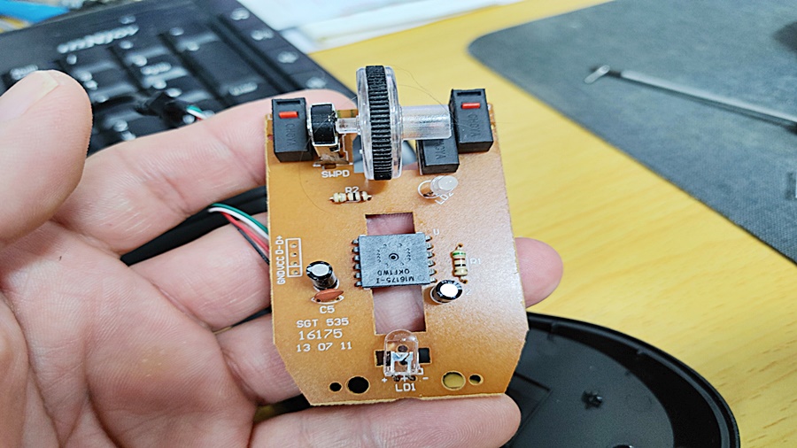 아주 간단하게 만들어진 듯한 마우스 기판의 모습....