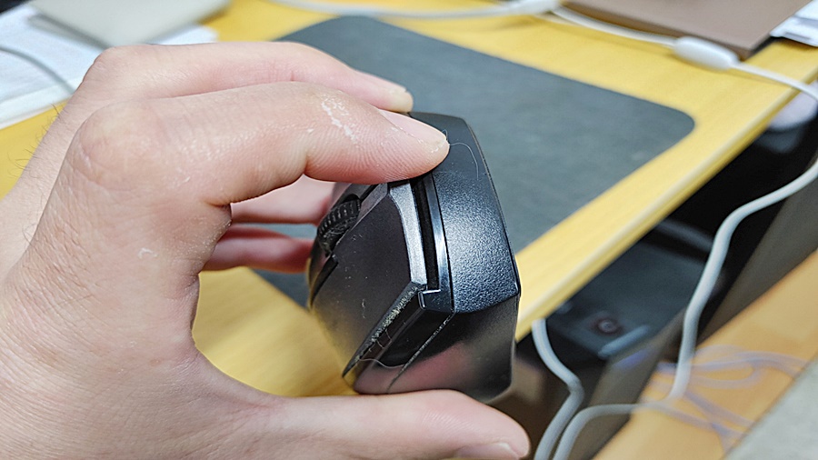 마우스 본체 위와 바닥면을 연결하는 부분이 고리처럼 걸려있는데 분리하는데 조금 애를 먹었네요..