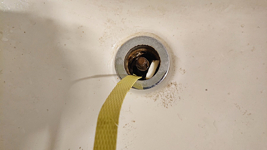 밴딩 끈으로 혹시나 했지만.... 아주 간단히 막힌 세면대 배수를 시원하게 해결했답니다.