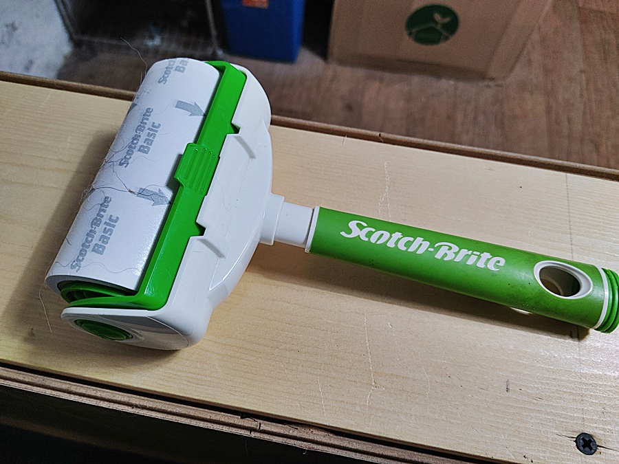 하지만 방치할 수 없기에 .... 평소 러그매트 강아지 털 제거할 때 요긴하게 사용하는 아아템을 이용해보기로 했습니다.