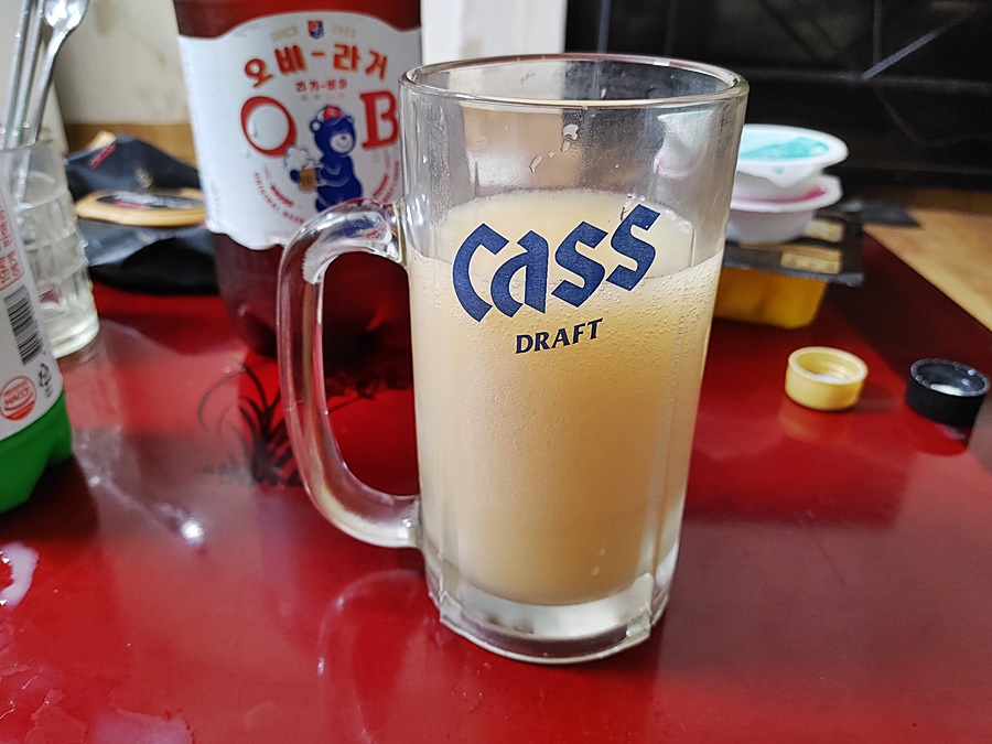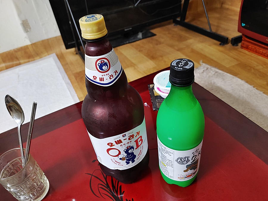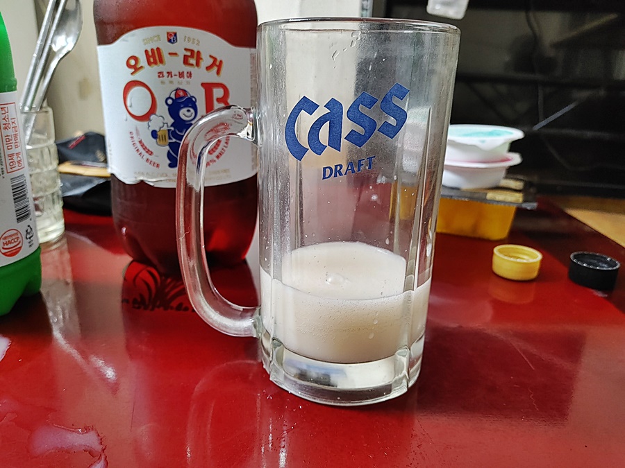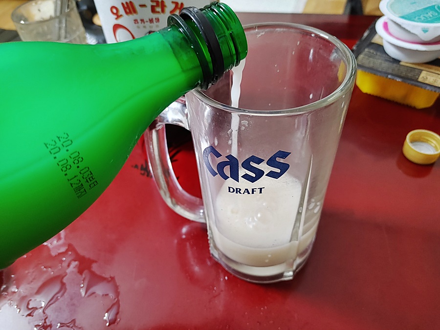 나중에 검색을 하니 또 맥주를 먼저 따라주고 약간의 막걸리를 넣어 섞어 먹기도 한다네요.