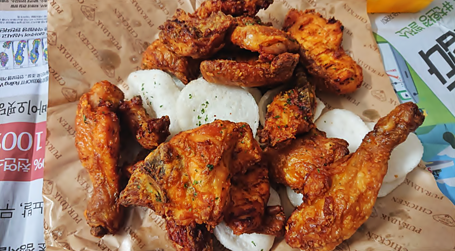 그래도 살짝 표현하자면 푸라닭 치킨의 맛은.. 음.........