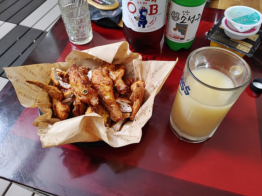 개인적으로 보드람 치킨 좋아하는데.. 이 푸라닭 치킨 후라이드가 살짝 그 맛이 나고요 훈제 느낌도 있고...