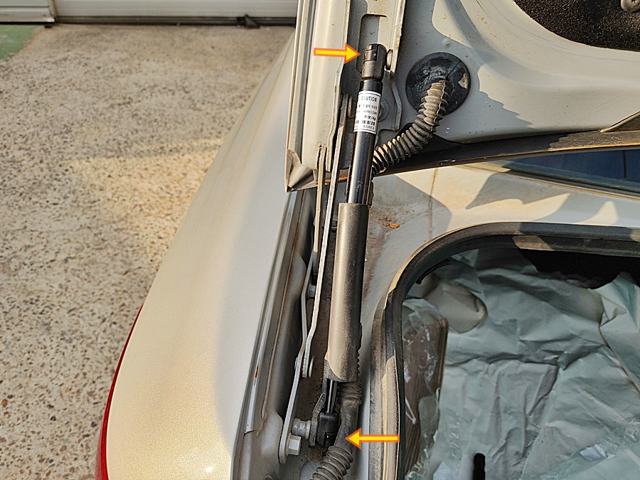 위와 같이 트렁크 덮개와 차제에 연결된 쇼바의 모습입니다.