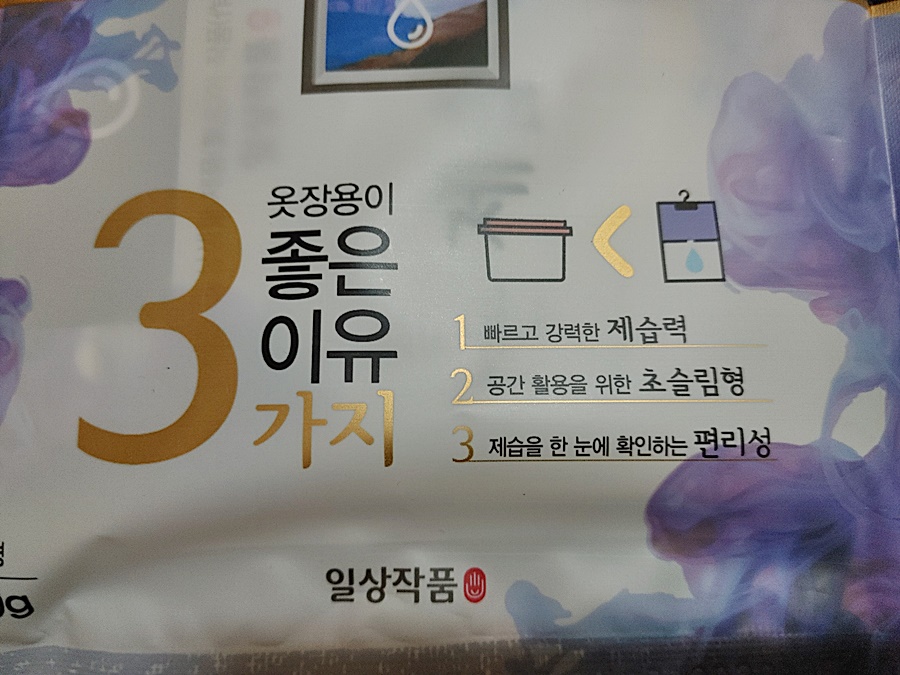 본 제습제의 3가지 장점이 자신만만(?)하게 포장지에도 소개하고 있답니다.
