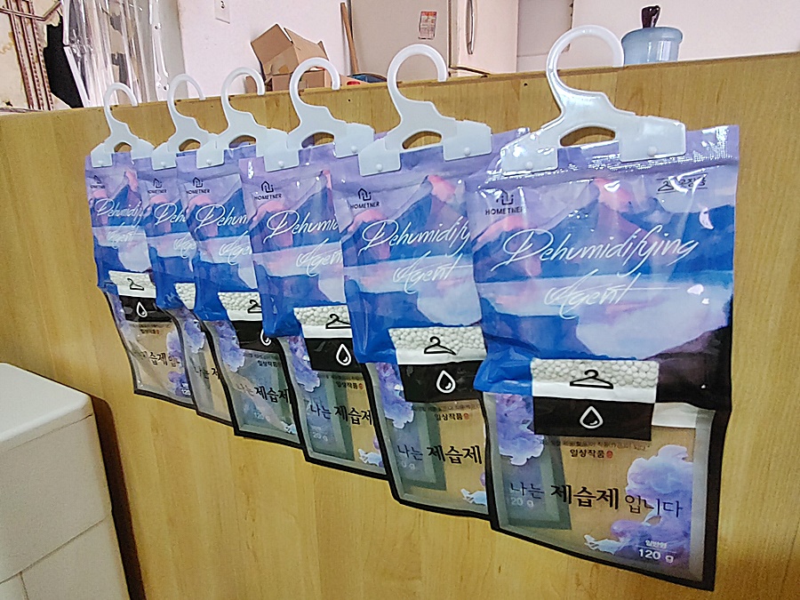 이 옷걸이형 제습제를 쓰기 전 사용하던 (어쩔 수 없이 필요한 공간이 있어 지금도 사용할 때도 있지만) 습기제거제의 조상 격인 물먹는 하마와 같은 통으로 된 선반형 제습제의 경우 사용하는 공간의 습도에 따라 내장된 염화칼슘이 굳어서 습기를 제거하는 시간이 오래 걸리는 경우도 있어 결국 긴 시간 제습으로 공간에 남은 습기를 잡는 제습효과가 떨어지는 단점을 많이 경험했기에 습기제거제는 습기제거제다워야 한다는 ㅎㅎ.