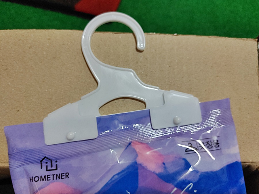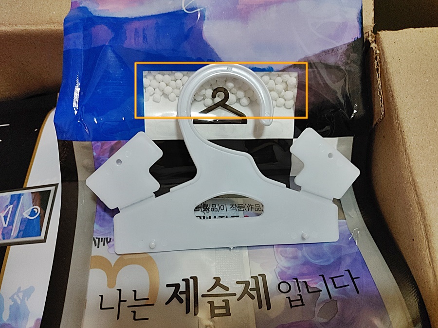 포장지를 뜯고 120g 옷걸이형 제습제를 꺼내면