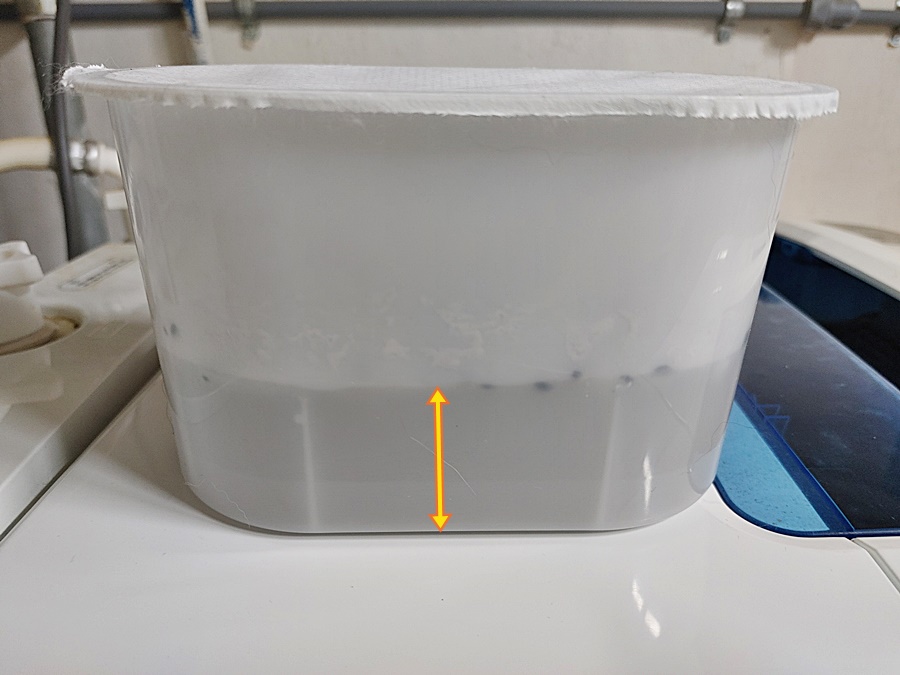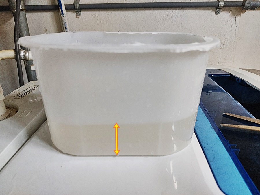 이전에 놓았던 선반형 제습제 염화칼슘이 다 녹고 고인 물의 양이고요