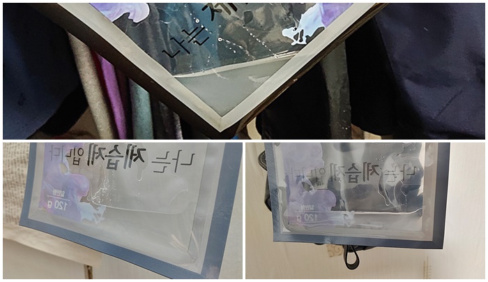 ( 이 날이 생각보다 습도가 높은 편은 아니었는데 거실 쪽과 방 옷걸이 쪽 옷걸이 제습제에 위와 같이 제습되어 아래 비닐 주머니에 물이 차고 있는 모습을 눈으로 확인할 수 있습니다.)