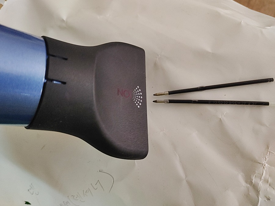 볼펜심 공기구멍인 끝 부분을 입으로 한 번 (볼펜 쓰다 안 나오면 한 번씩 해보셨죠 ㅋㅋ) 불어주고 마무리...