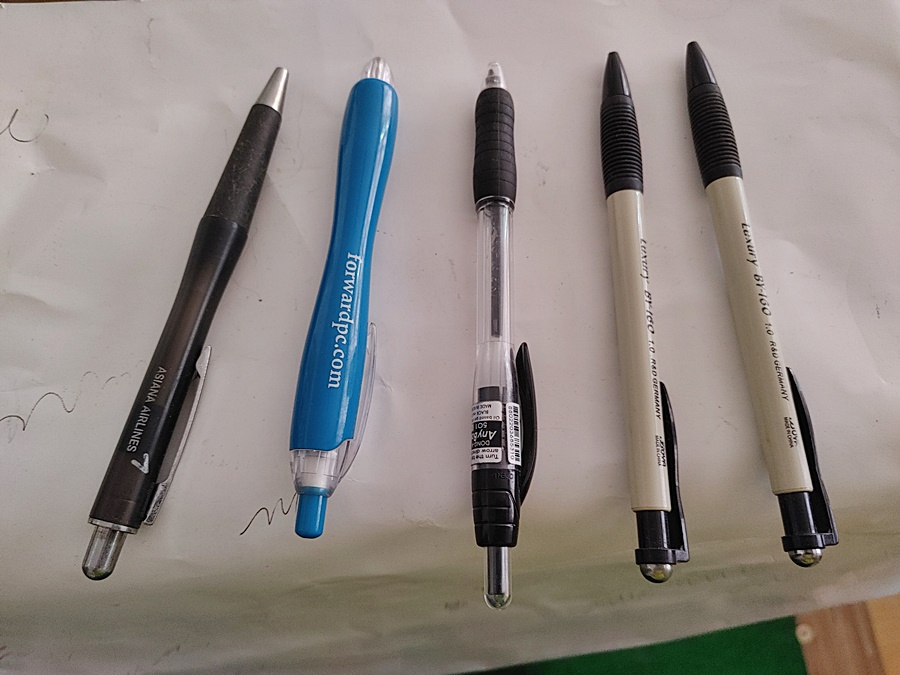 나오지 않는 볼펜 다섯 자루 중 세자로 살렸습니다.